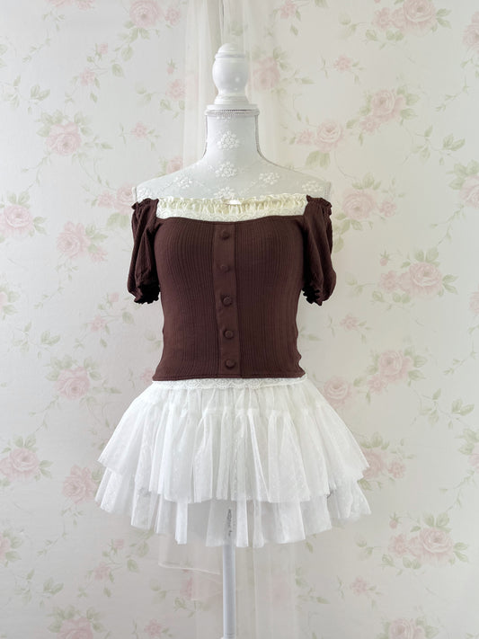 Message Restock RequestGRL Lace Shoujo Milkmaid Tops (Brown)
