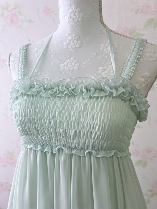 L’EST ROSE Halter Neck Smocked Camisole Dress (Mint Green)
