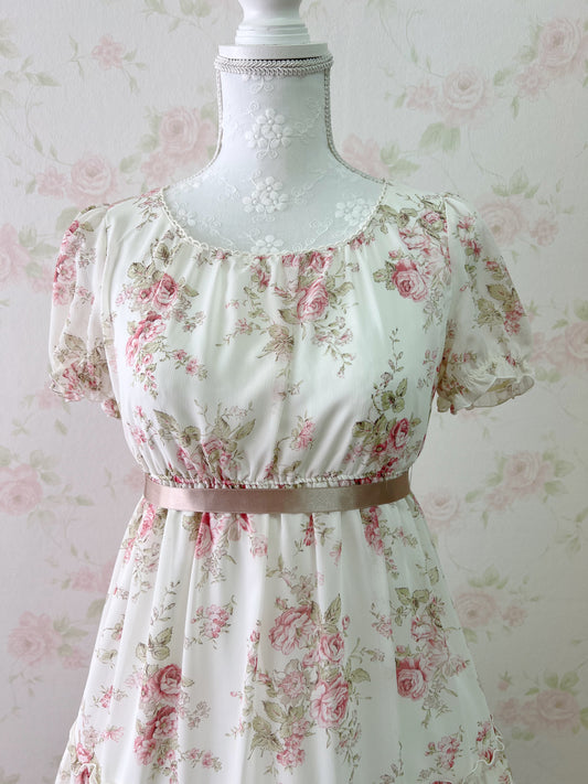 L’EST ROSE Princess Puff Sleeved Chiffon Dress (Ivory)