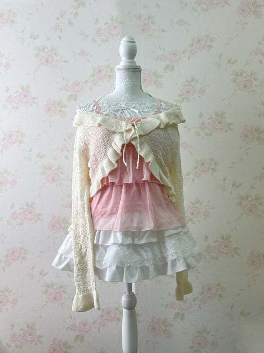 Pium Tiered High Waist Side Bow Skirt (Dark Gray)