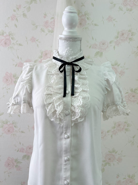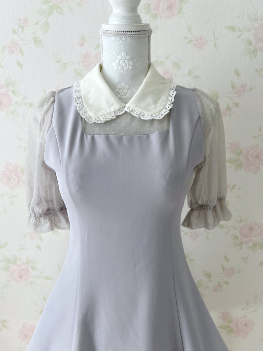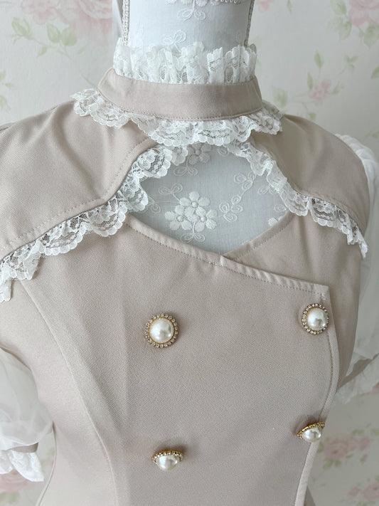 ROJITA Organdy Puff Sleeved Pearl Button Dress (Beige)