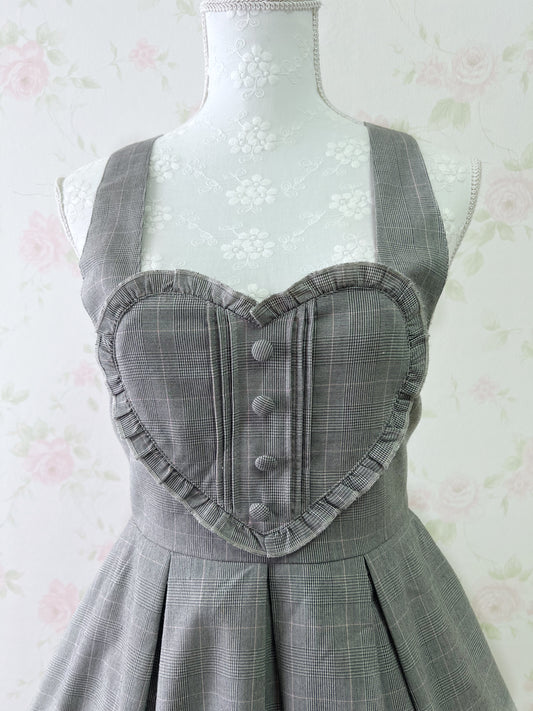 Secret Honey Heart Belt Checked Pleated Skirt (Green)