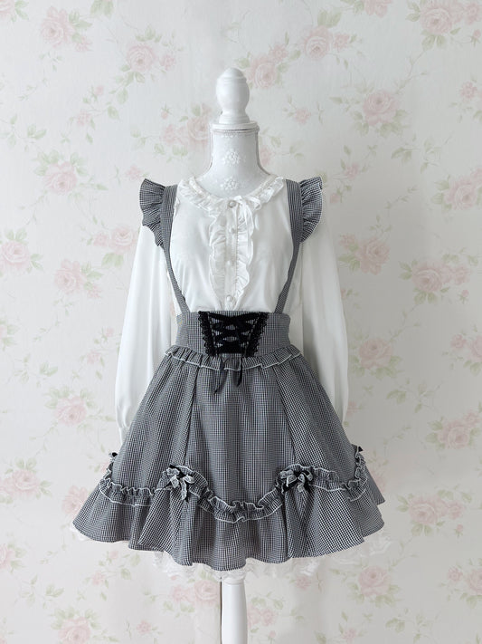 Secret Honey Ruffled Line Jumper Skirt (Black Check)