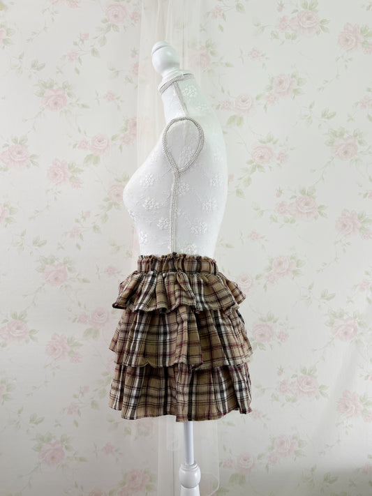 Shoujo Tiered Checked Skirt (Milk Tea Beige)