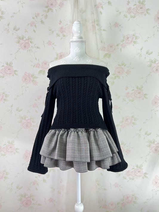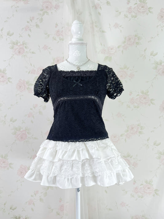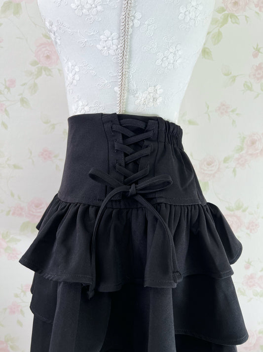 GRL Tiered High Waist Side Bow Skirt (Black)