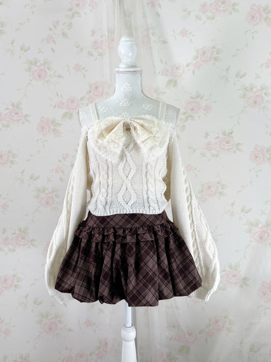 Olive des Olive Side Bow Tiered Skirt (Brown)