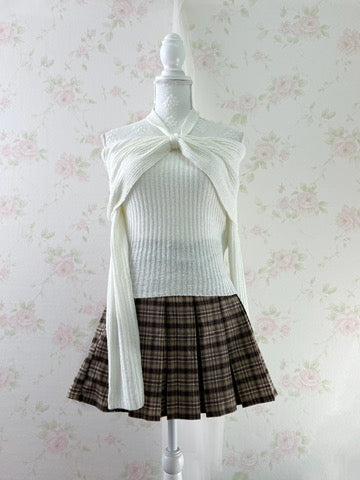 GRL Bow Front Halter Neck Ribbon Sweater (Ivory)