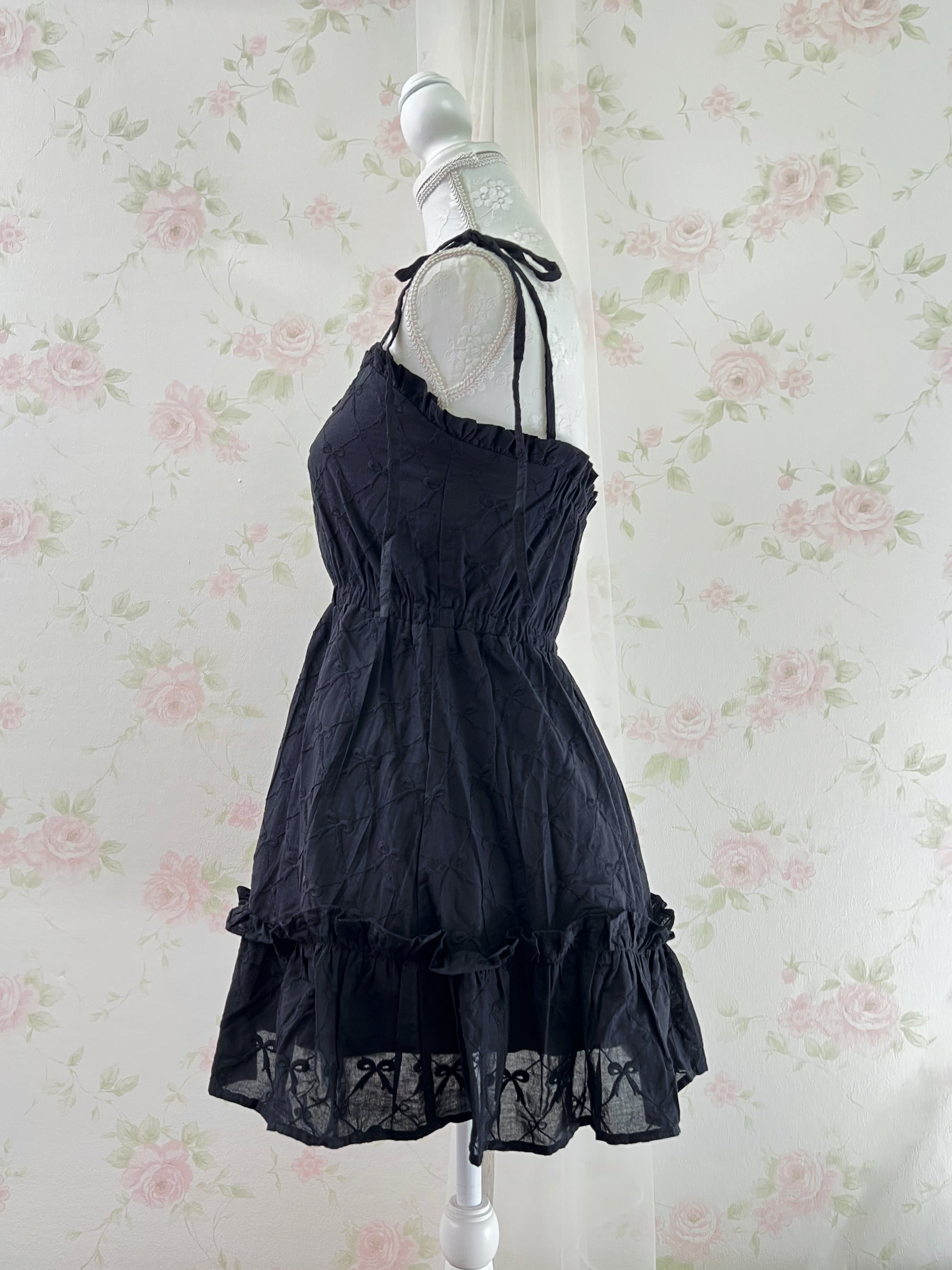 apres jour Ribbon Pattered Cotton Dress (Black)