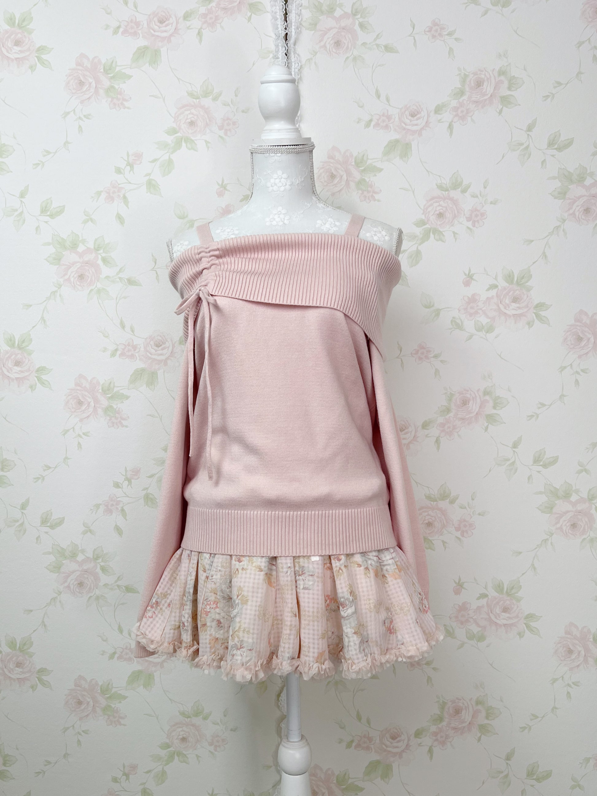 Side String Off Shoulder Shoujo Knit Top (Pink)