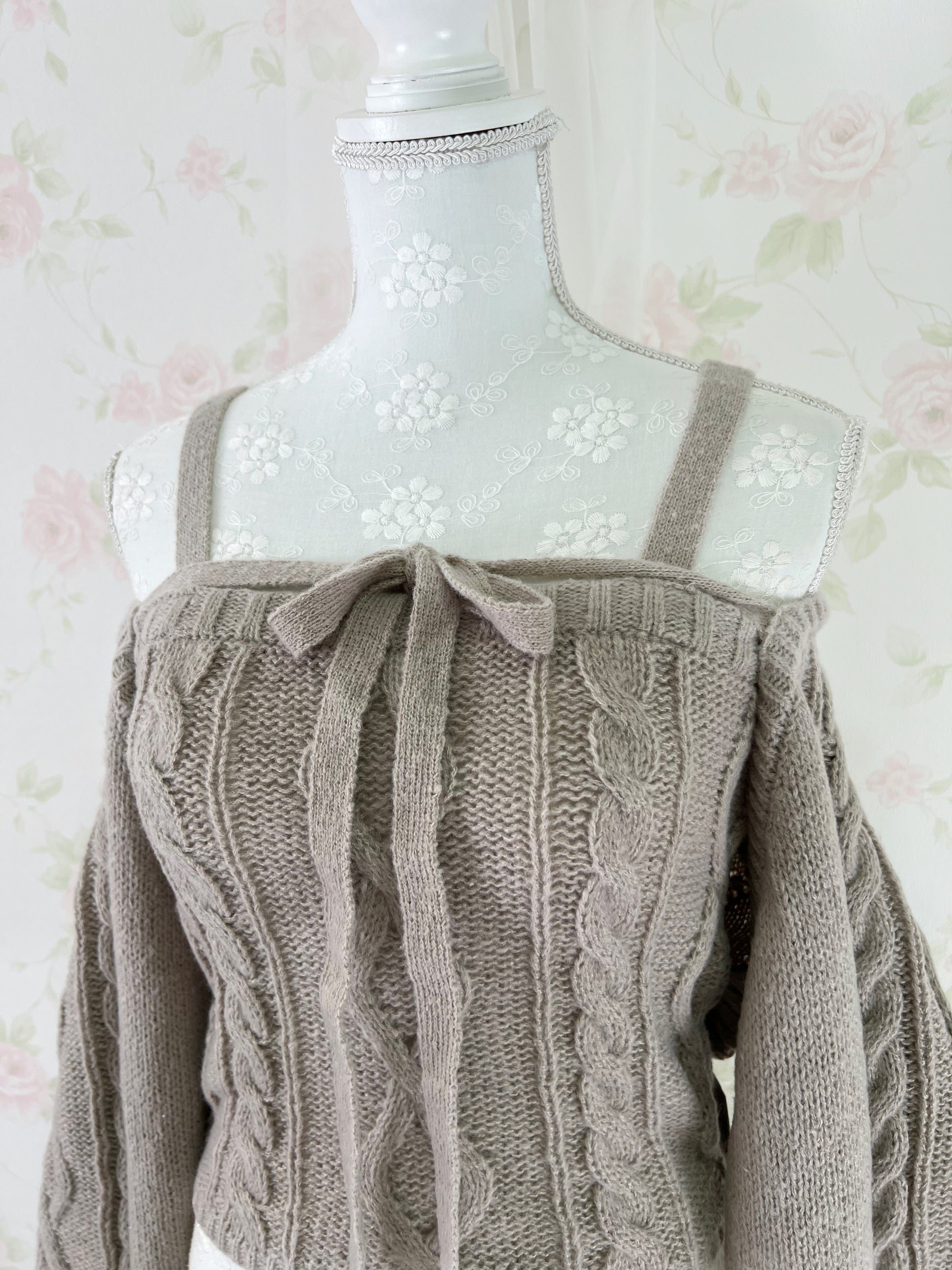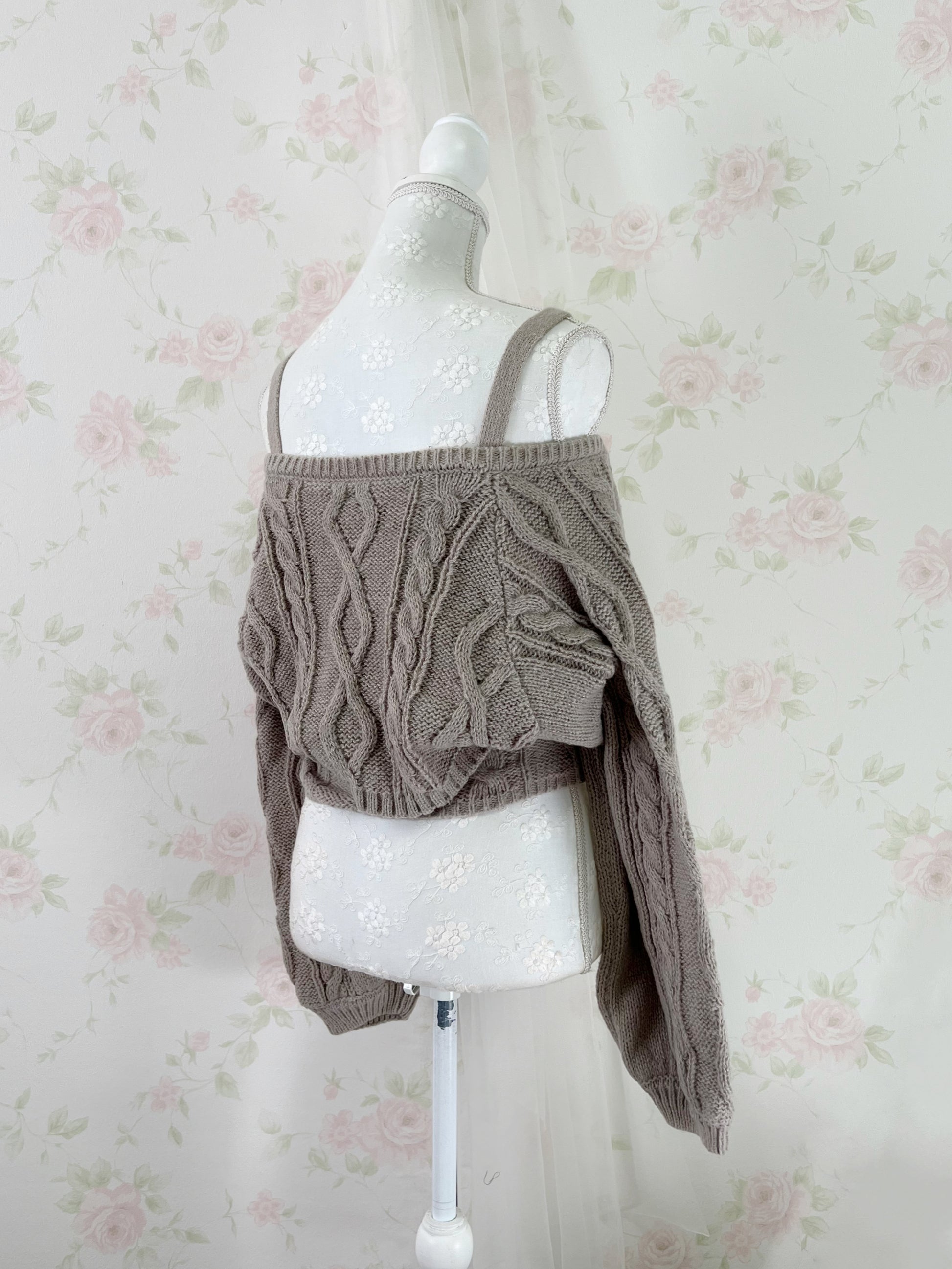 GRL Cardigan Moe Sleeve Camisole Set (Moca Beige)