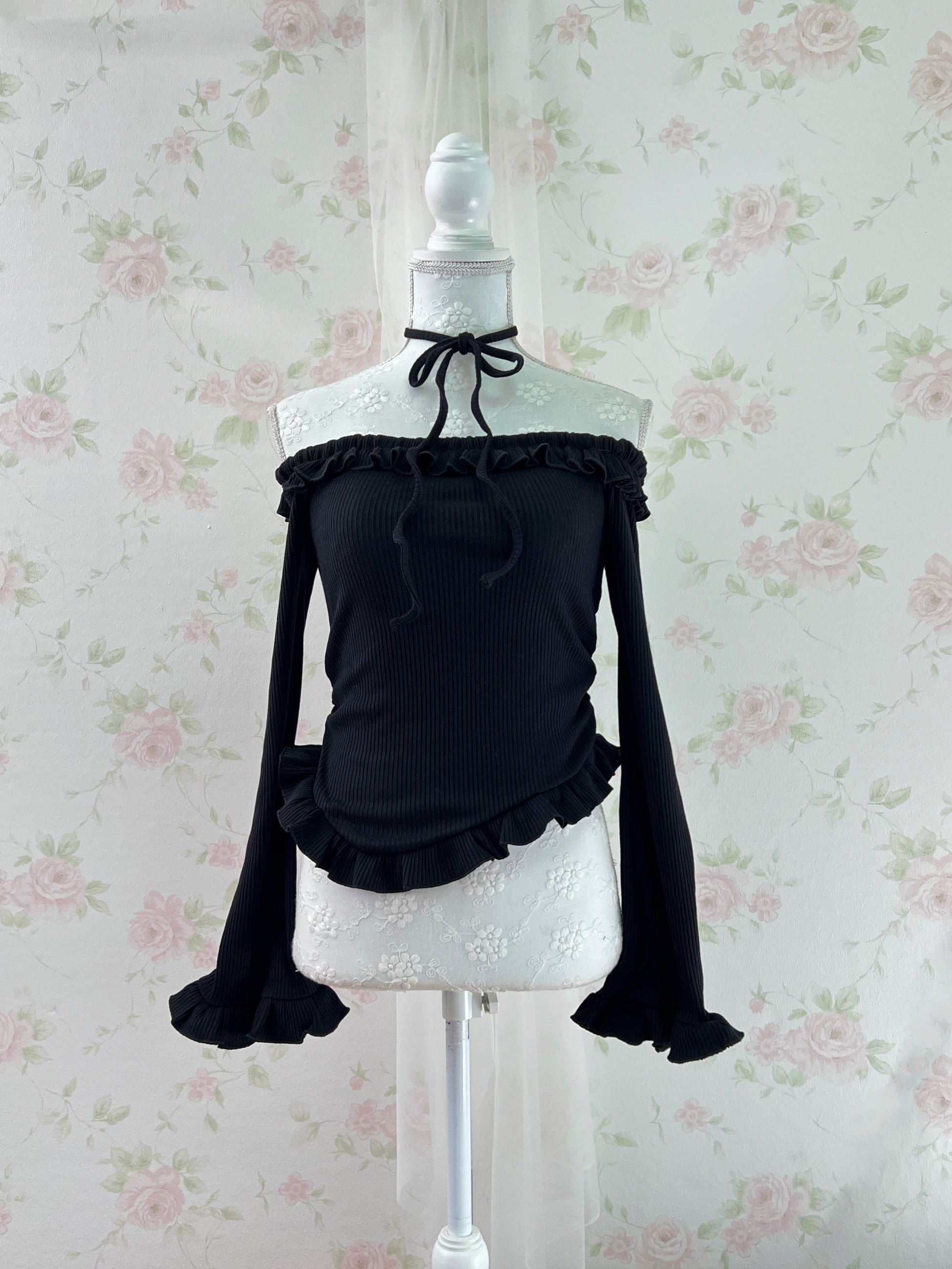 GRL Chocker Asymmetry Ruffled Hem Top (Black)