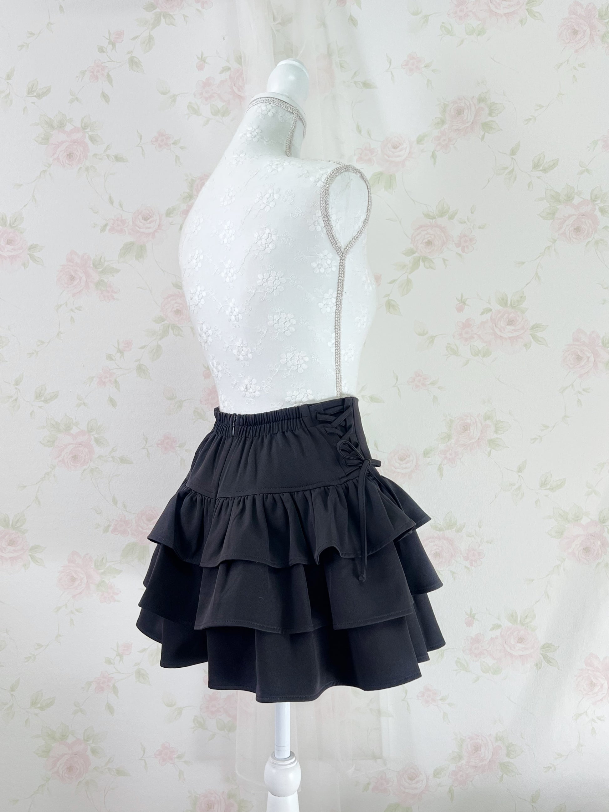 GRL Tiered High Waist Side Bow Skirt (Black)