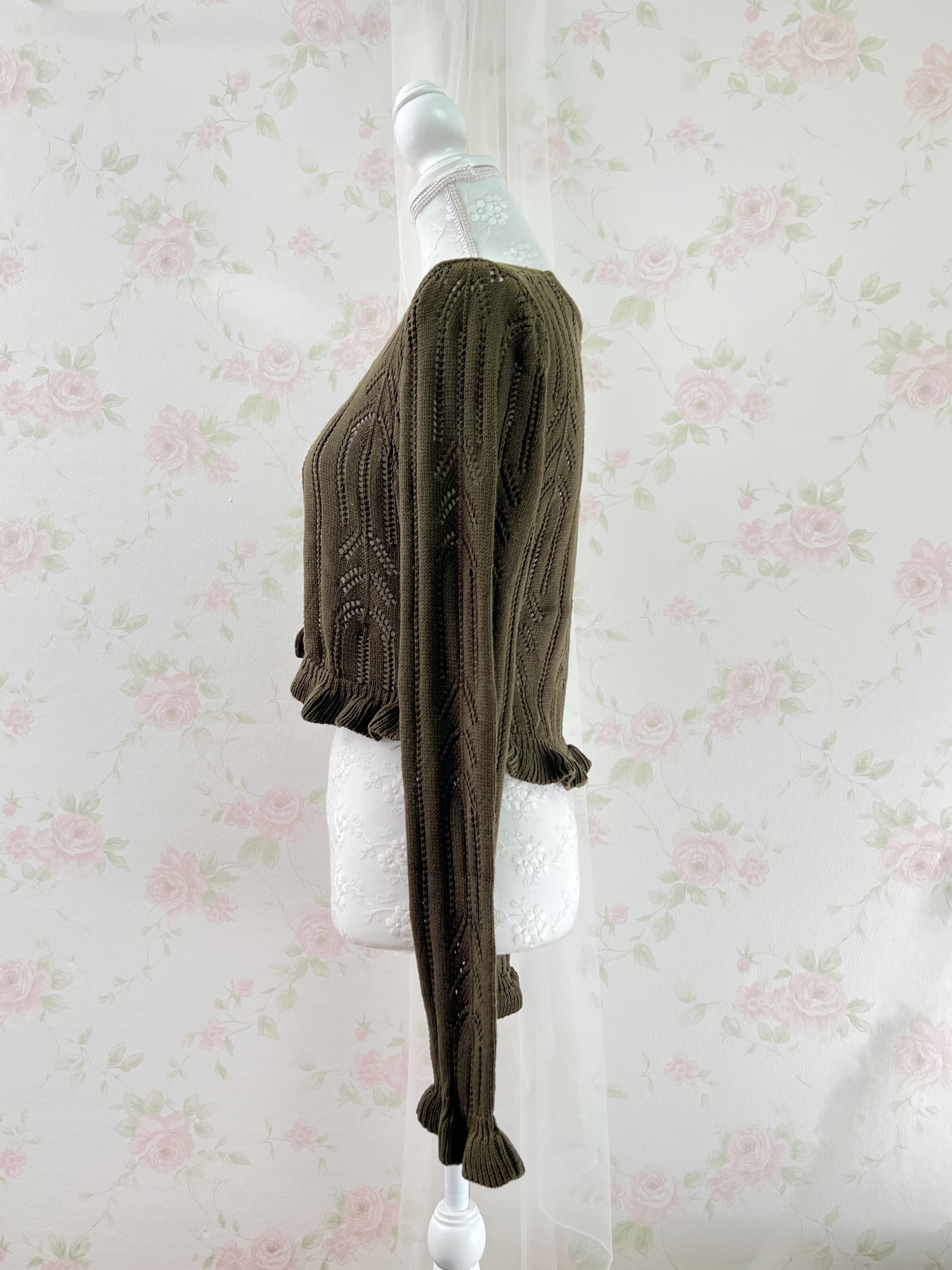 Y2K Double String Ruffled Hem Cardigan (Khaki)