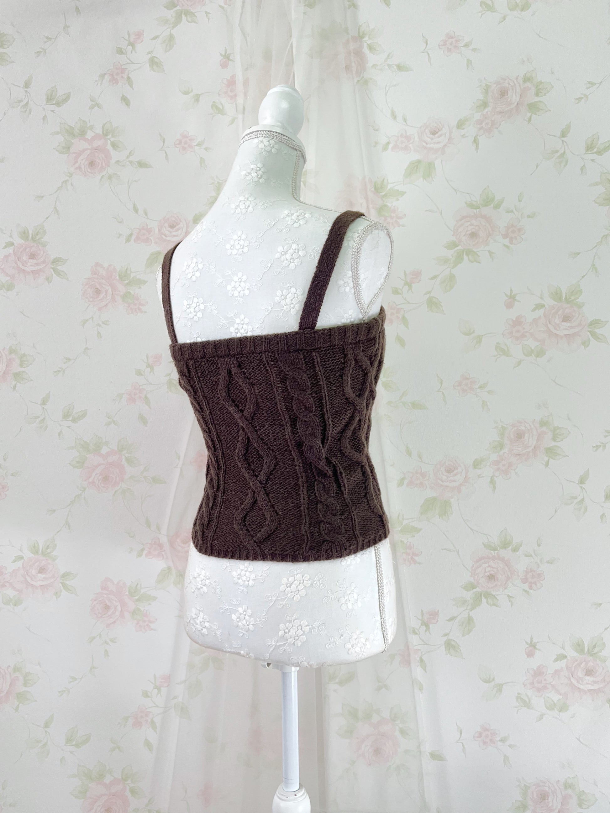 Cardigan Moe Sleeve Camisole Set (Brown)
