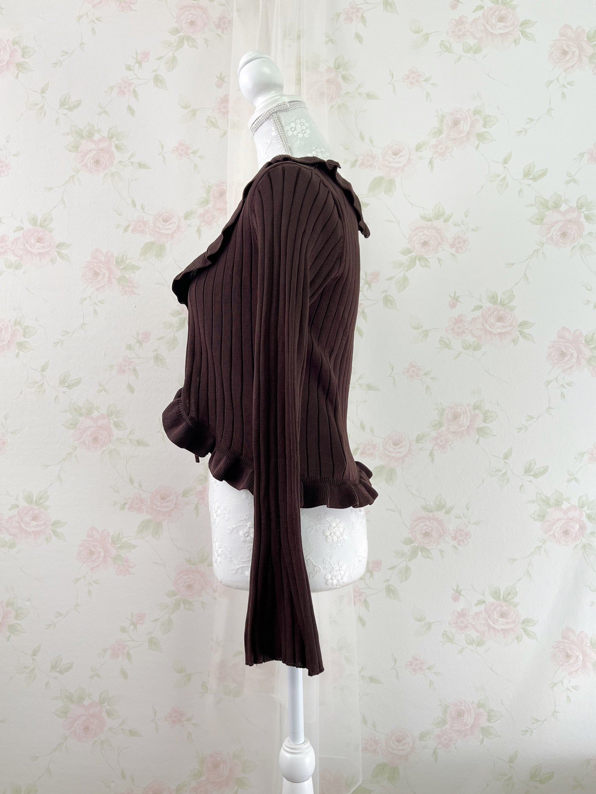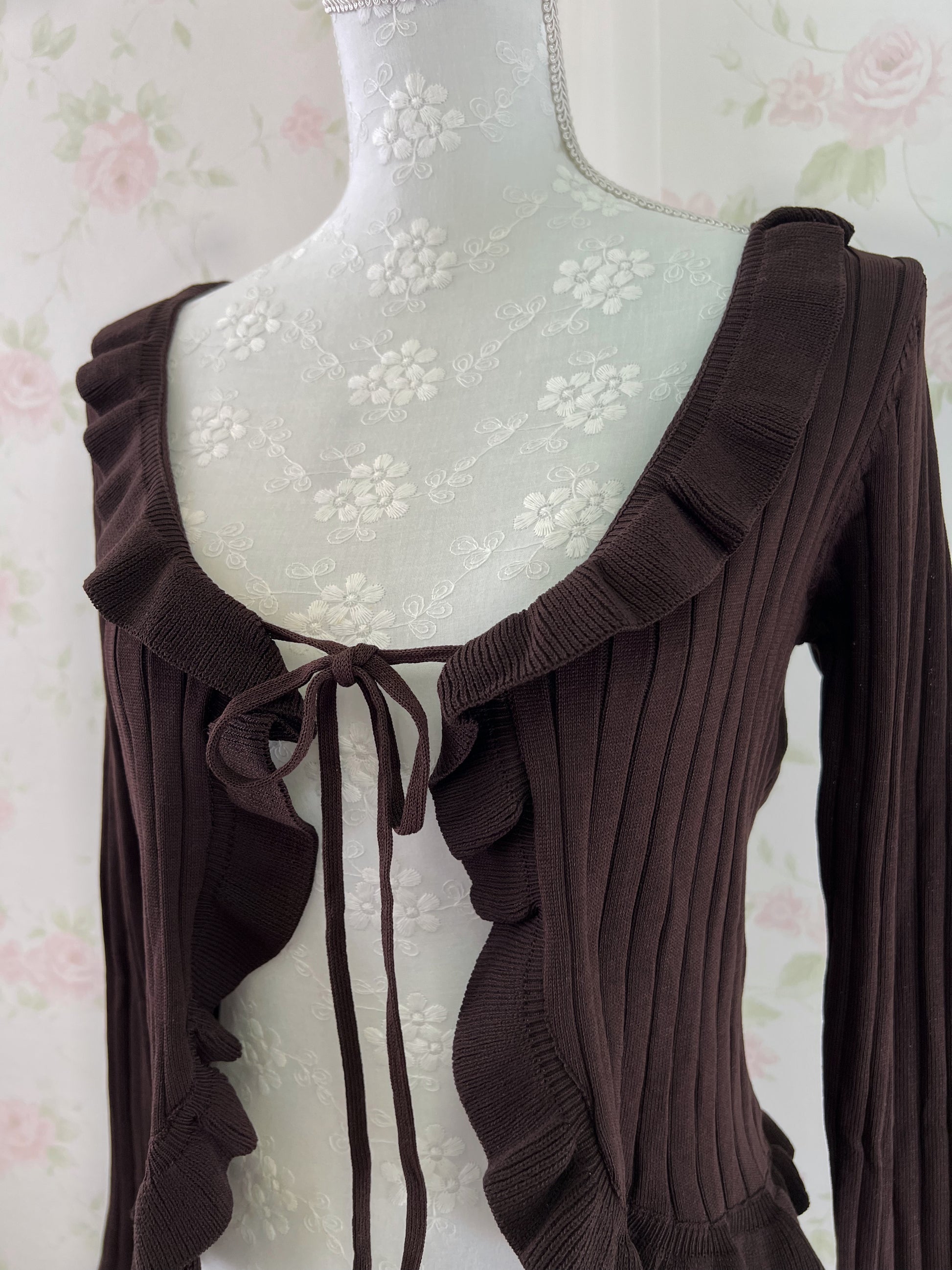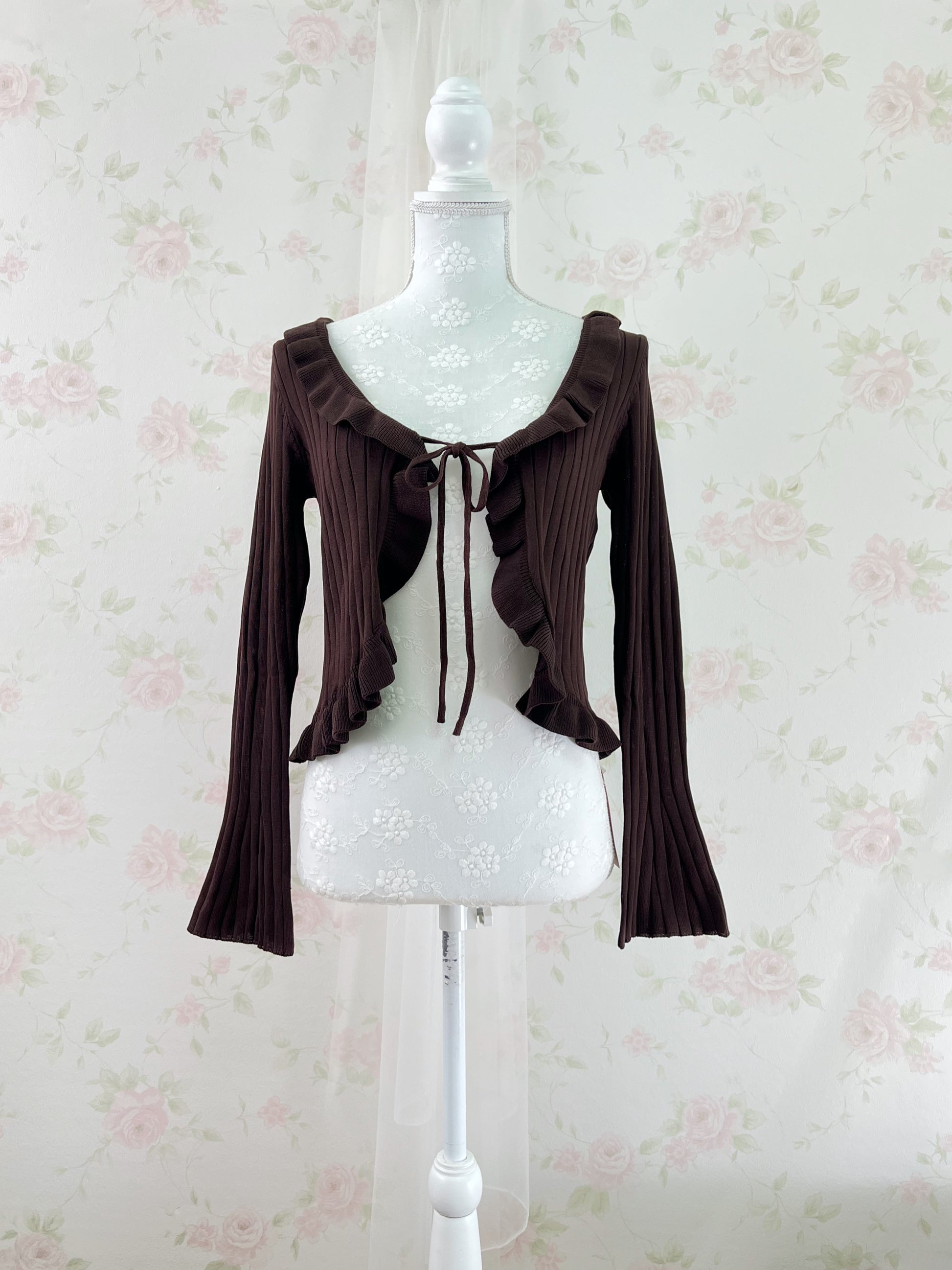 Clear Wide Sleeved Ruffled Cardigan (Chocolate)