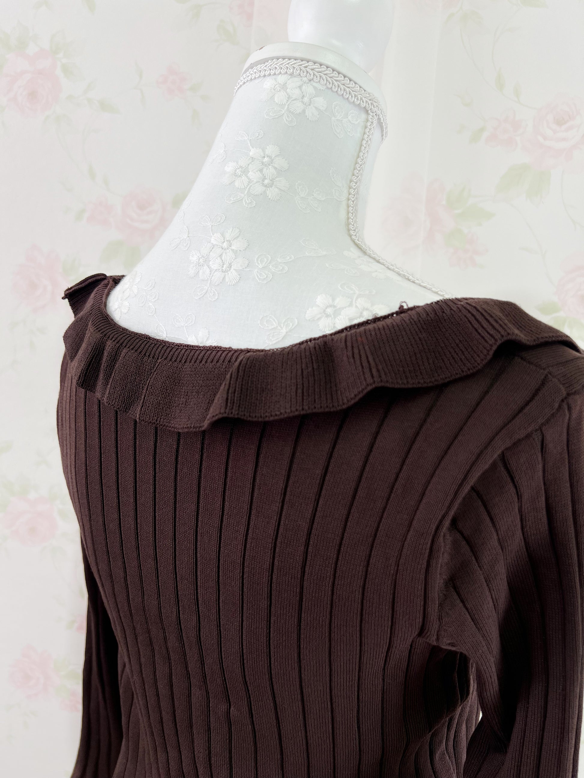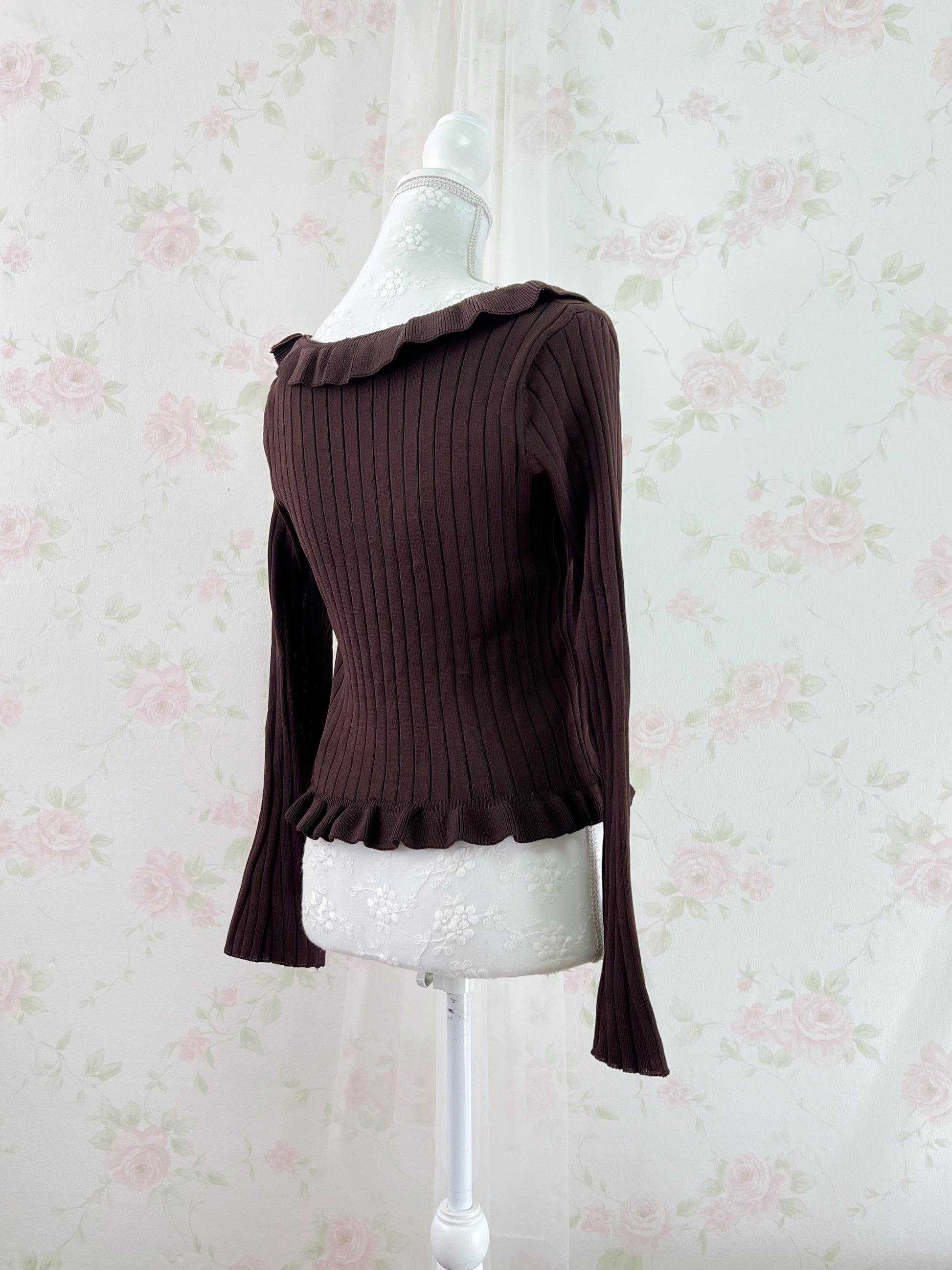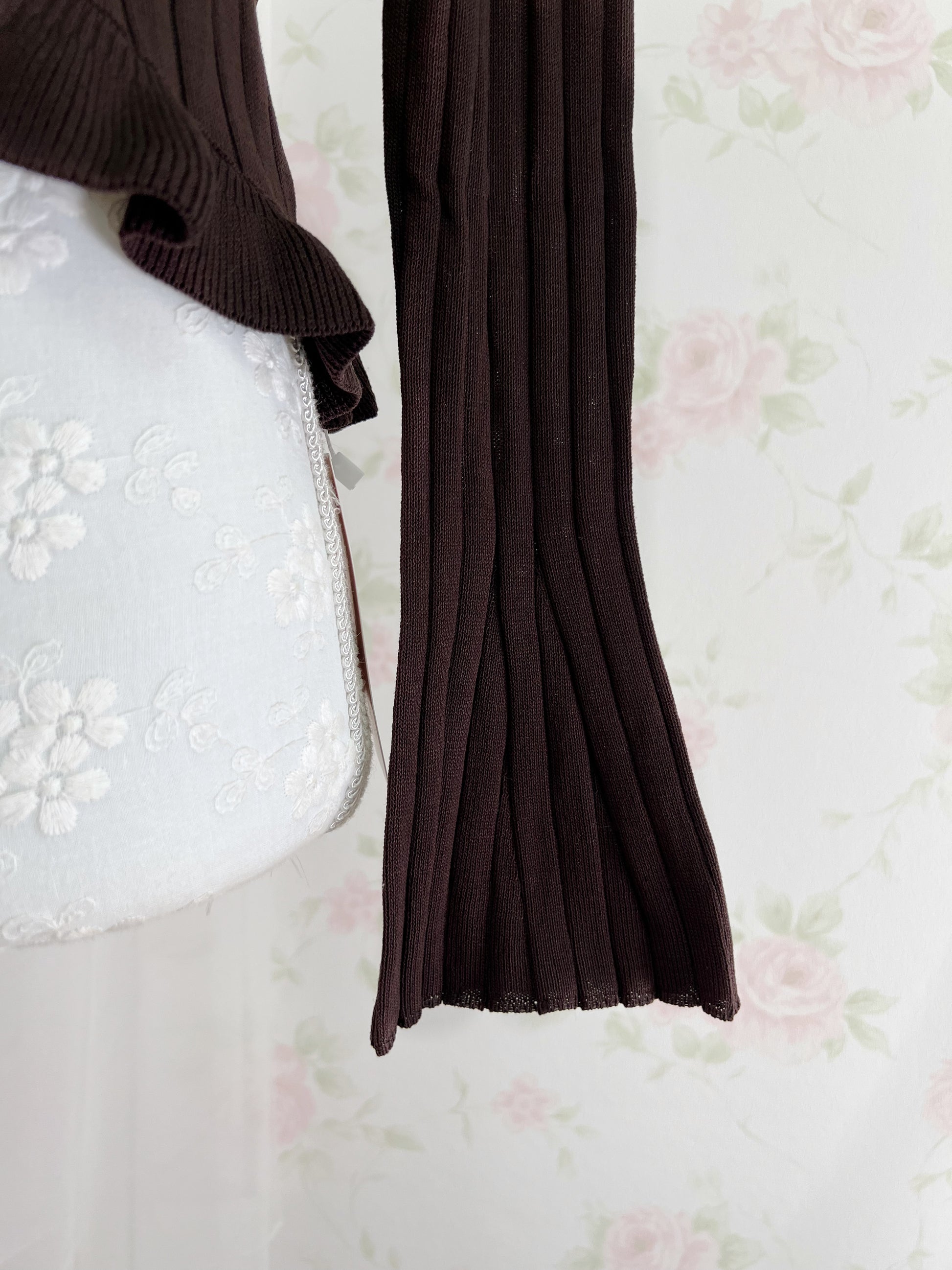 Clear Wide Sleeved Ruffled Cardigan (Chocolate)