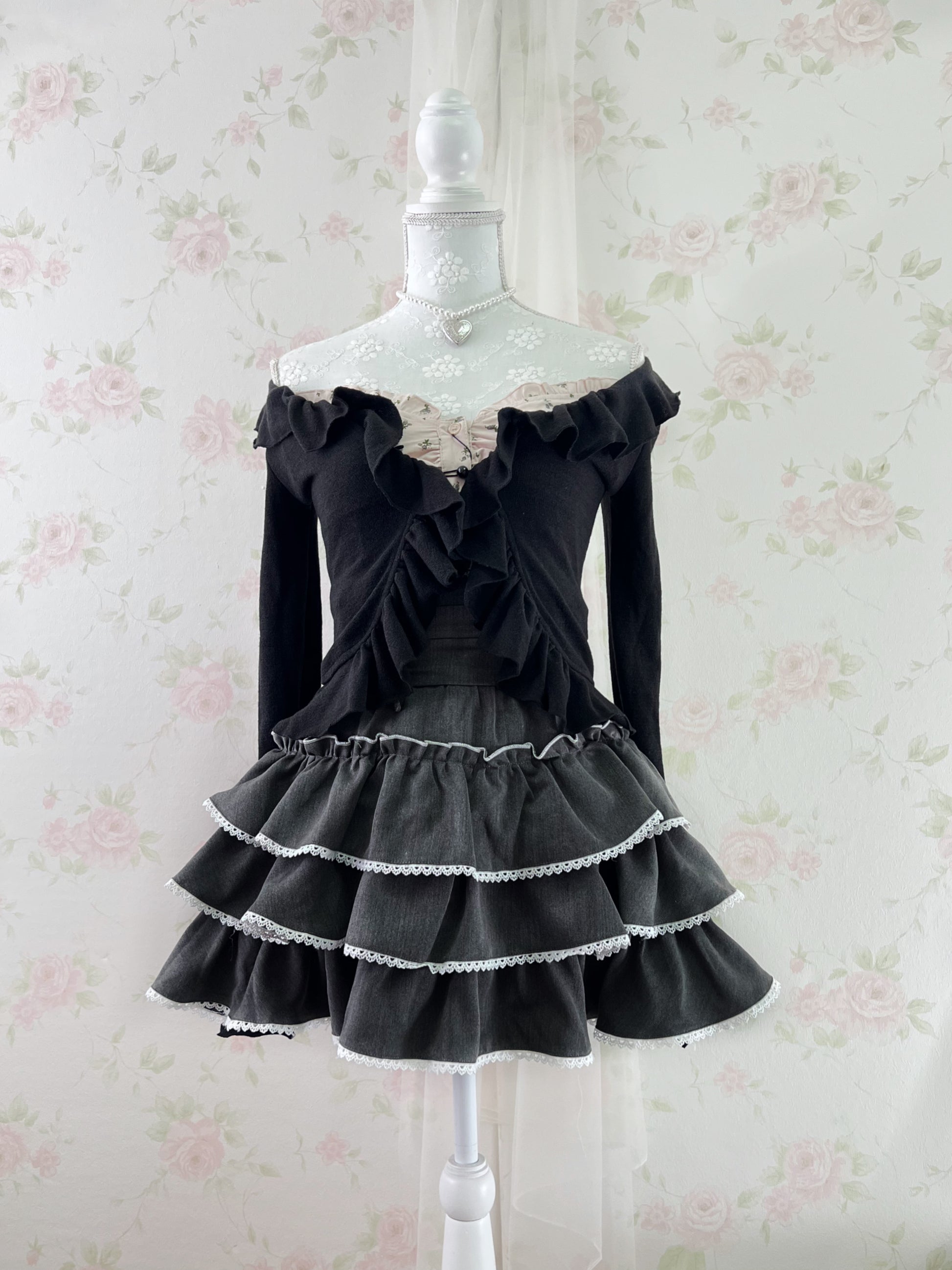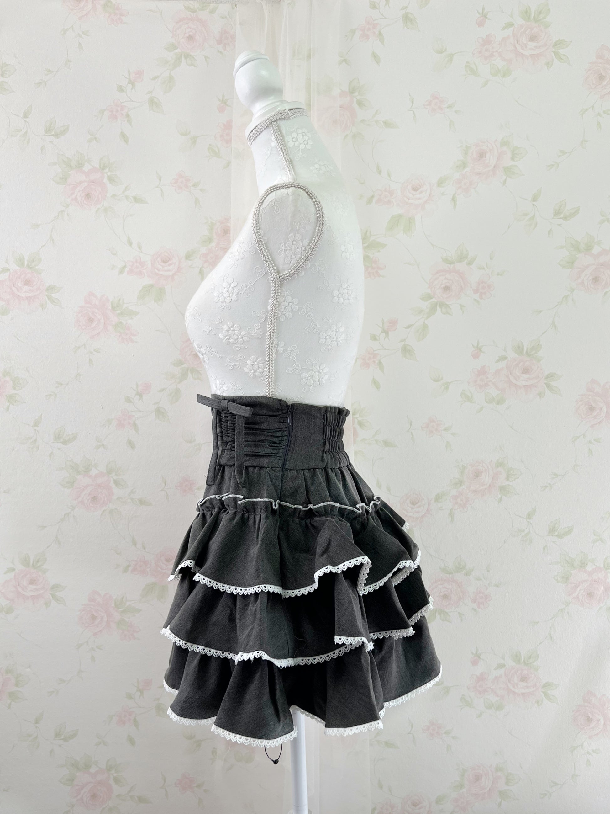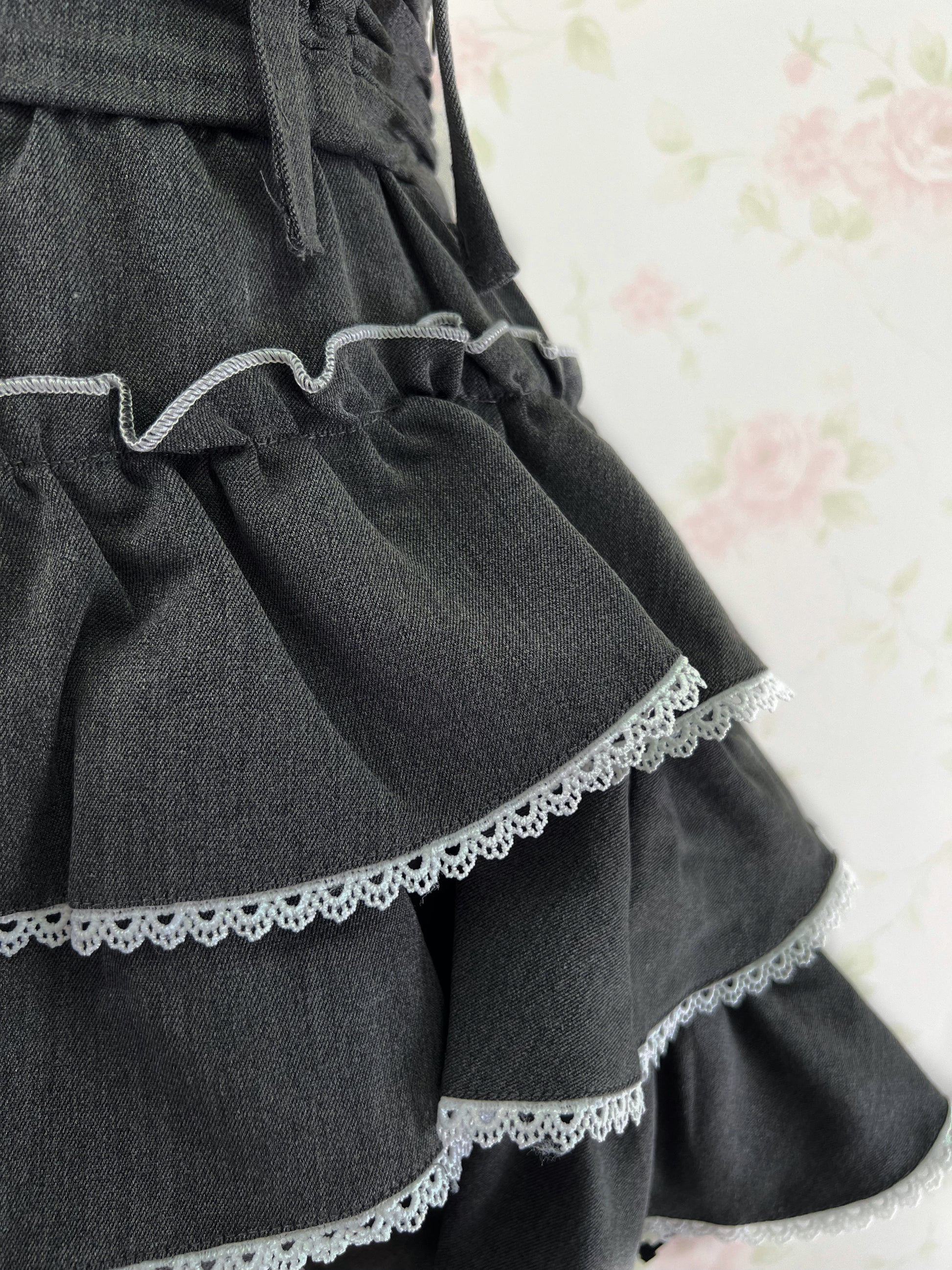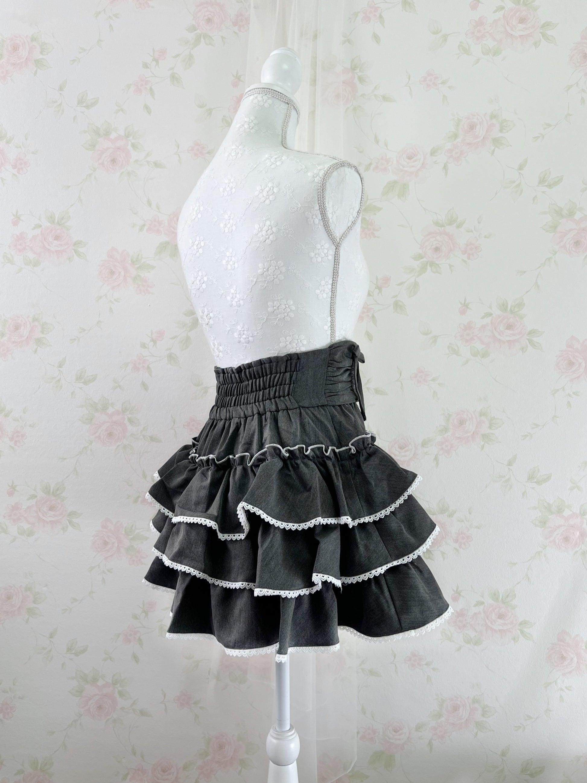 Pium Tiered High Waist Side Bow Skirt (Dark Gray)