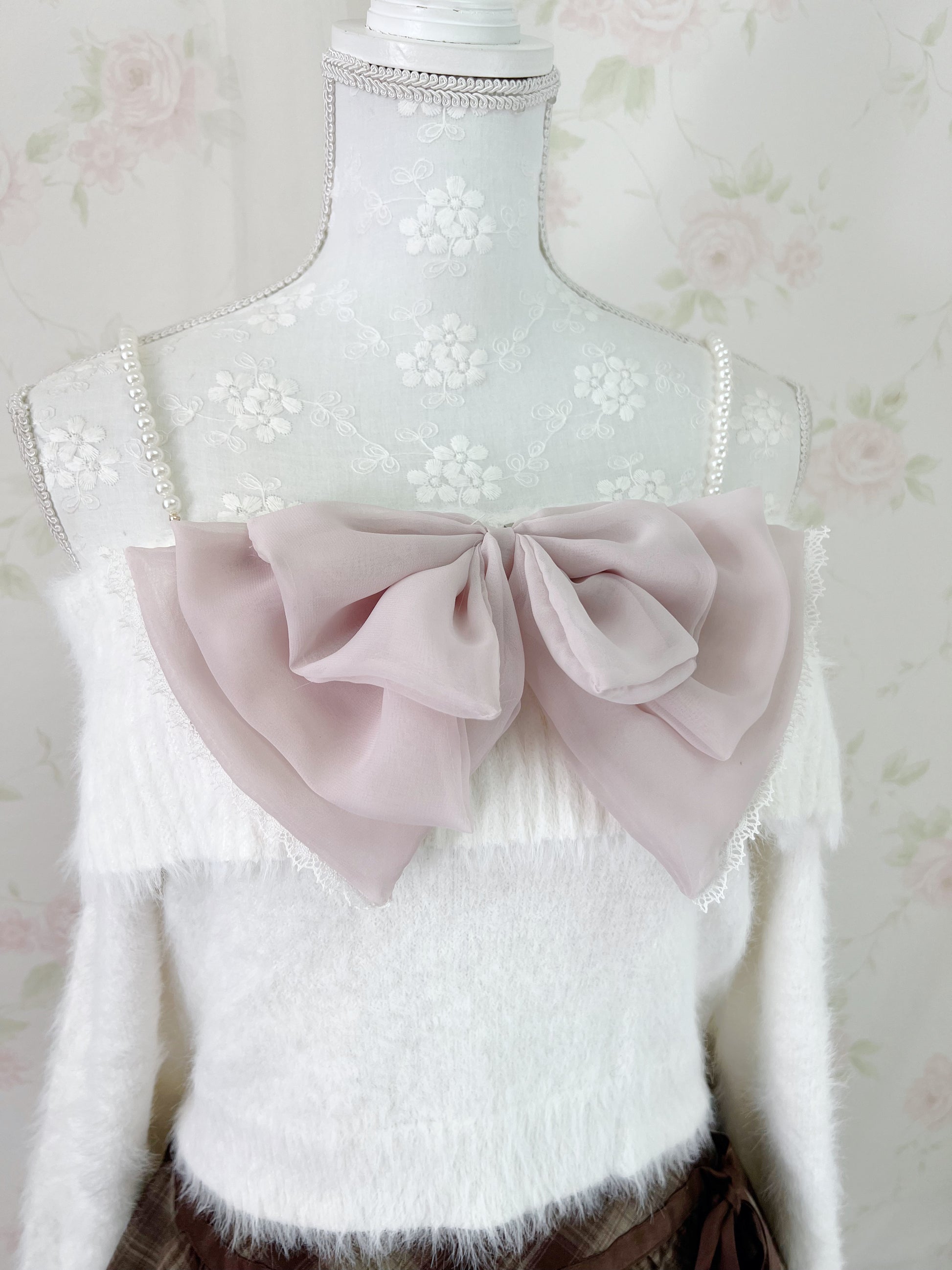 GRL Pearl Strap Off Soulder Sweater (White)