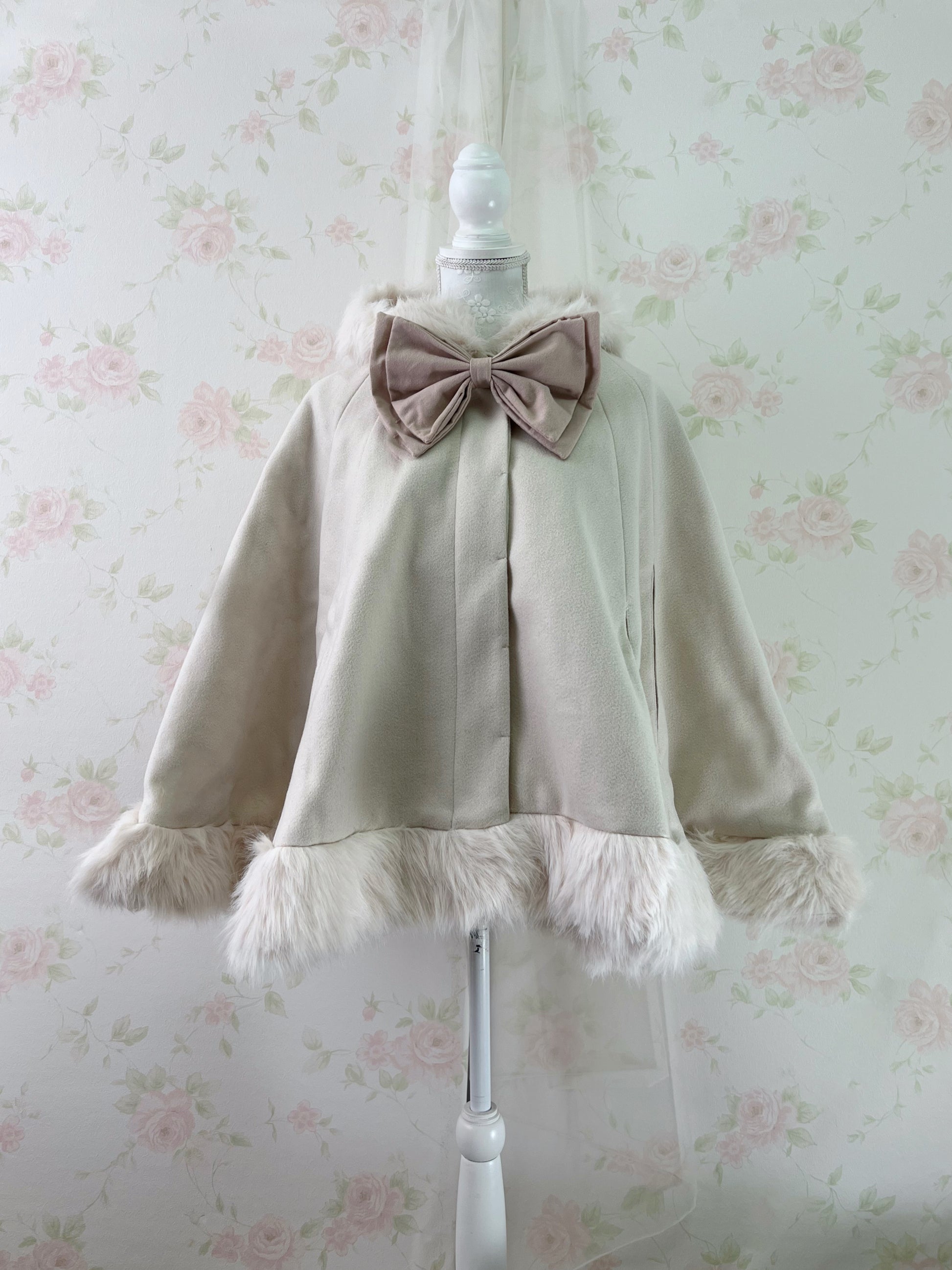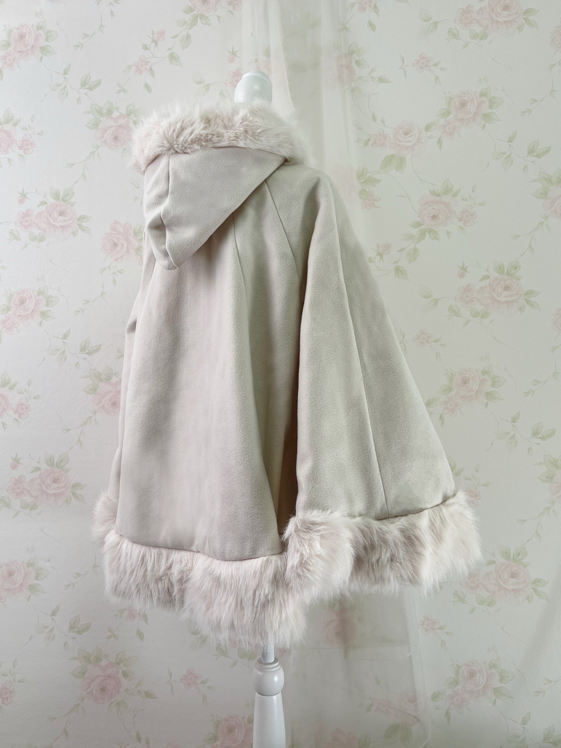 GRL Fake Fur Hood Poncho Coat (Ivory)
