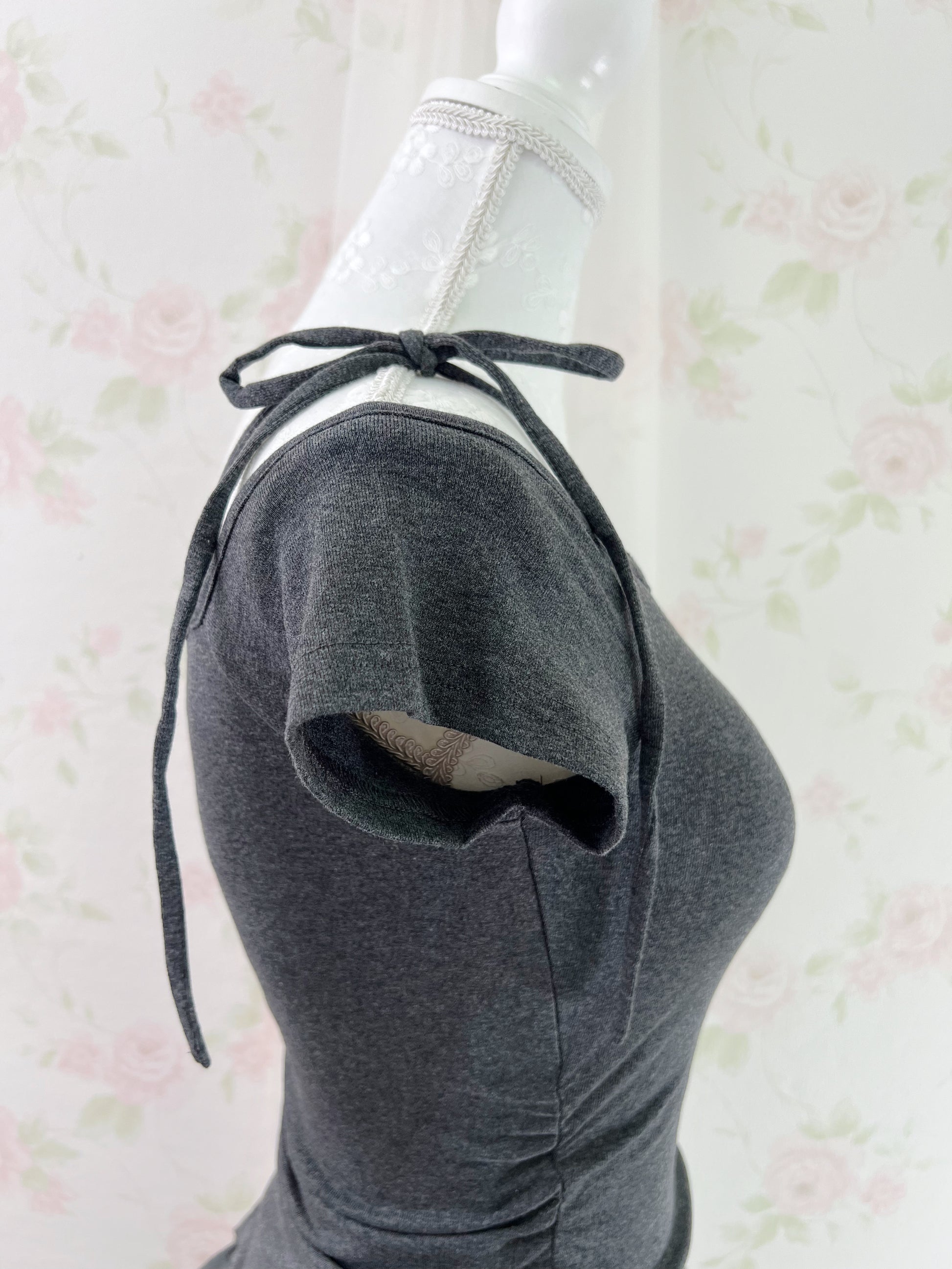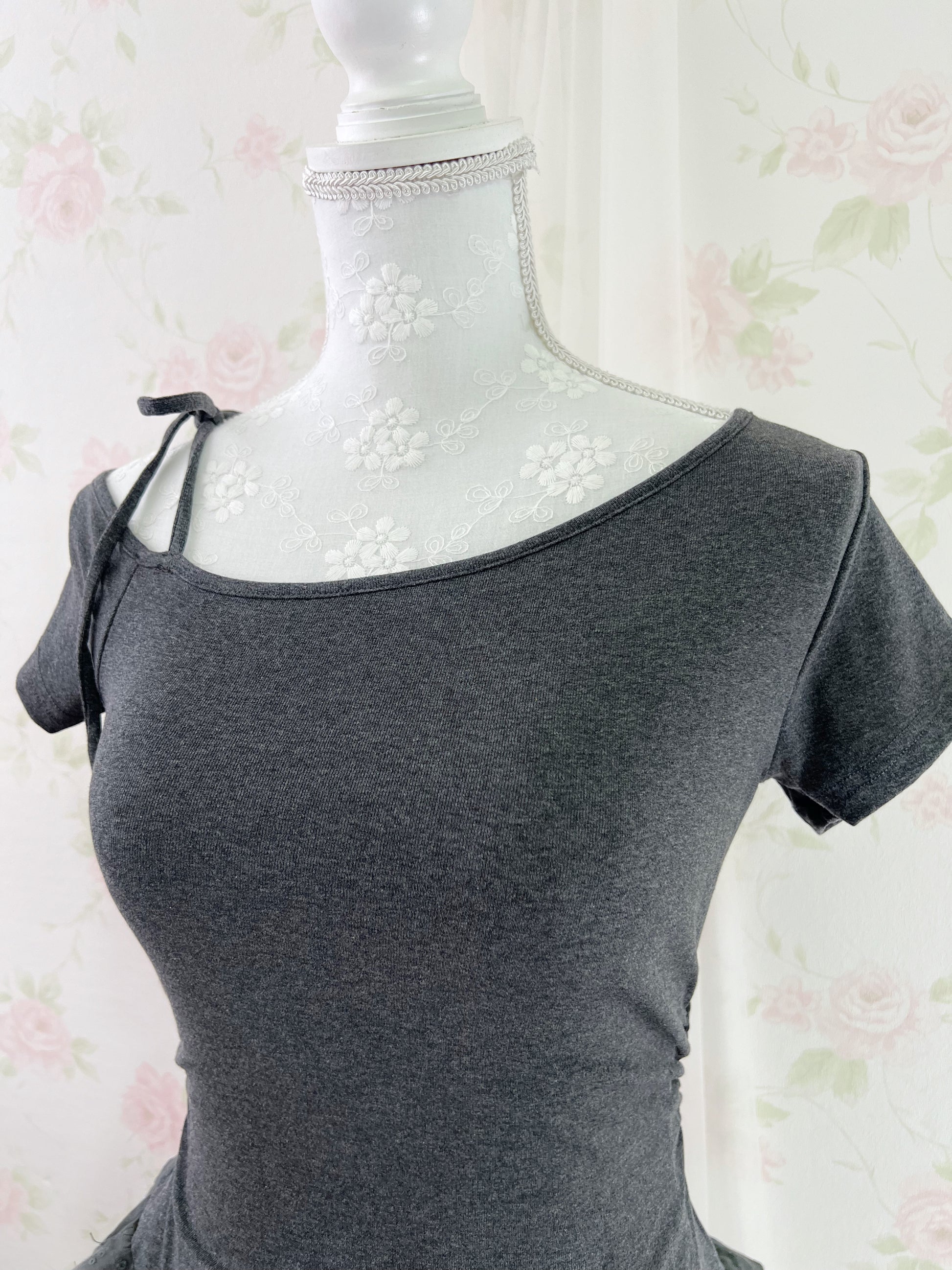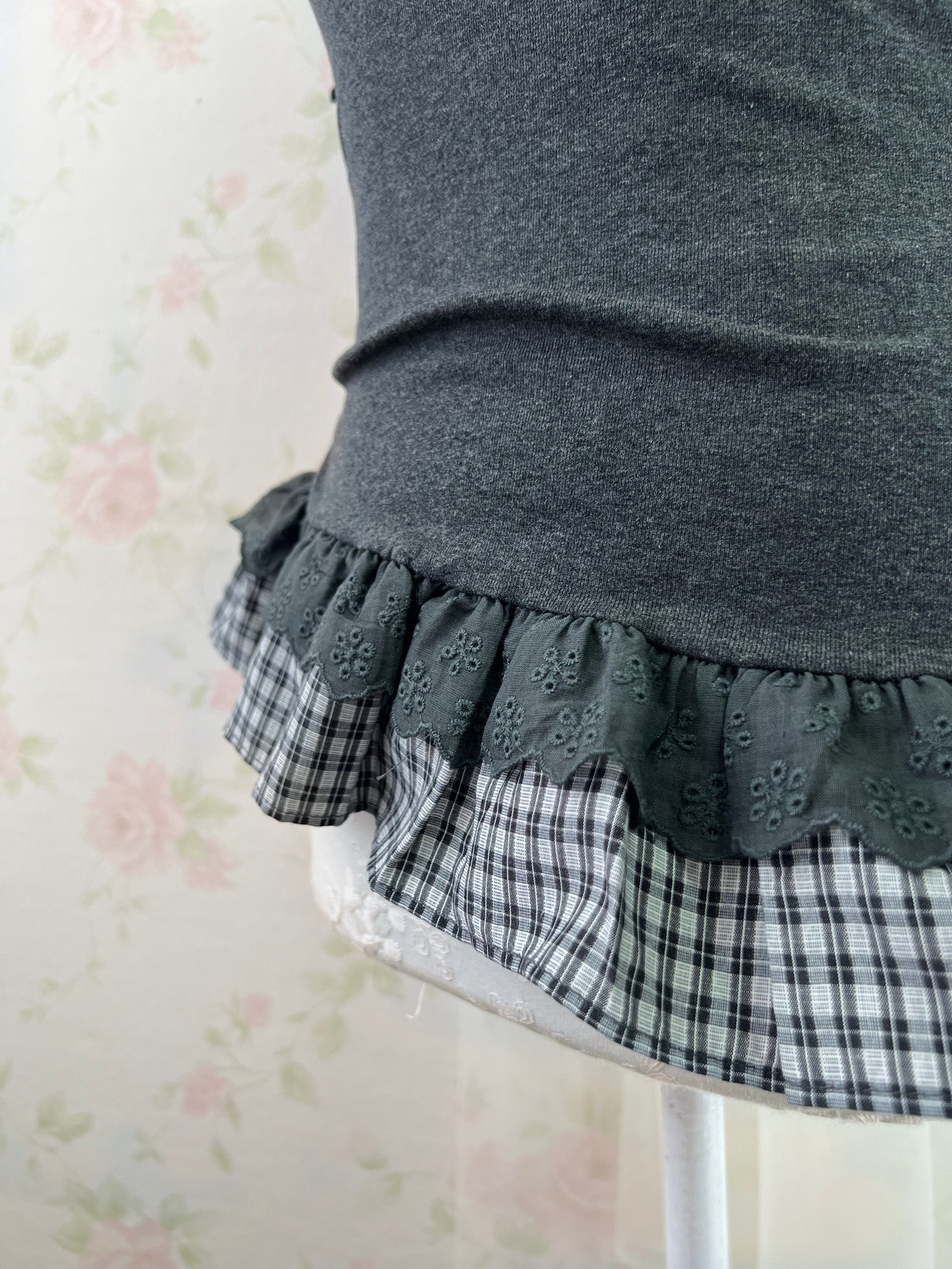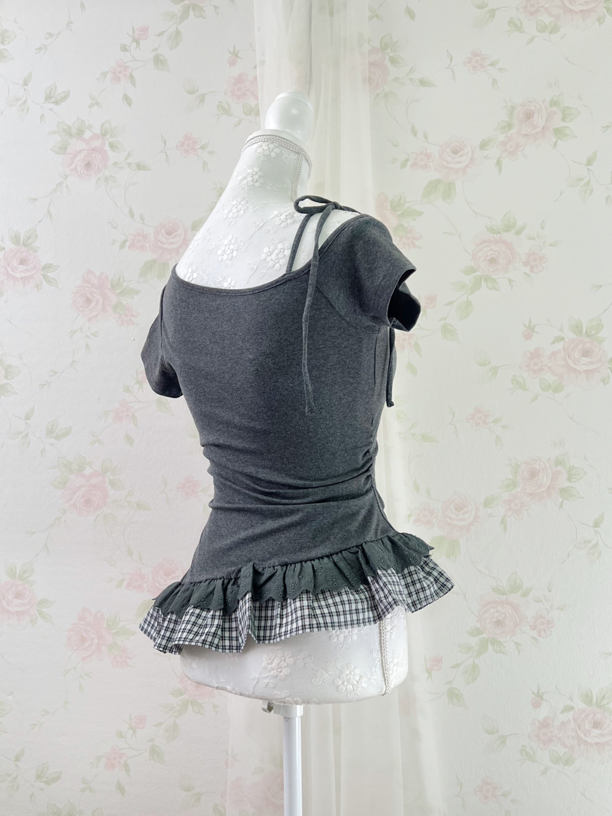 GRL Checked Ruffled Hem One Shoulder T-shirt