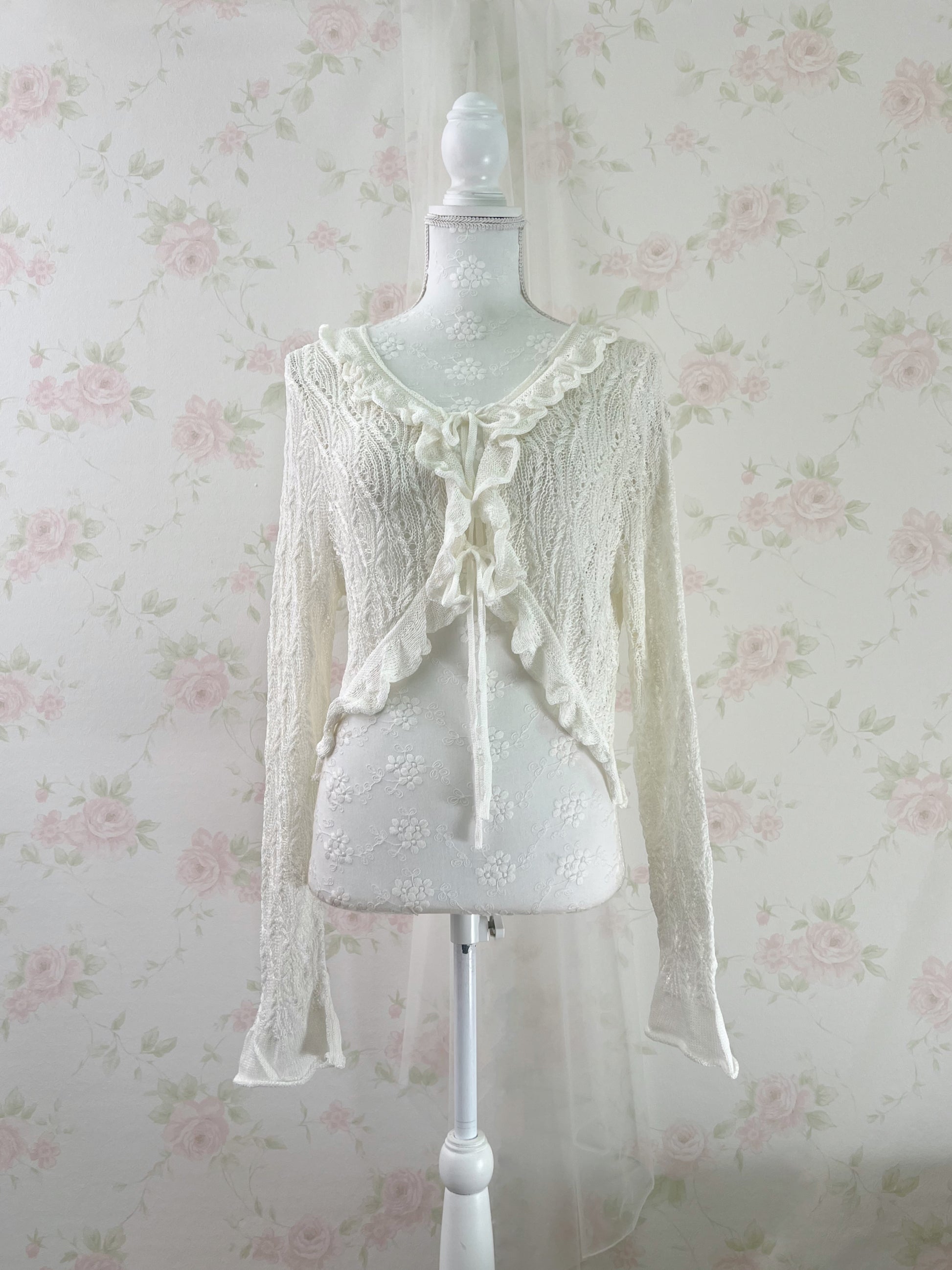 GRL Ruffled Bell Sleeve Cardigan (Ivory)