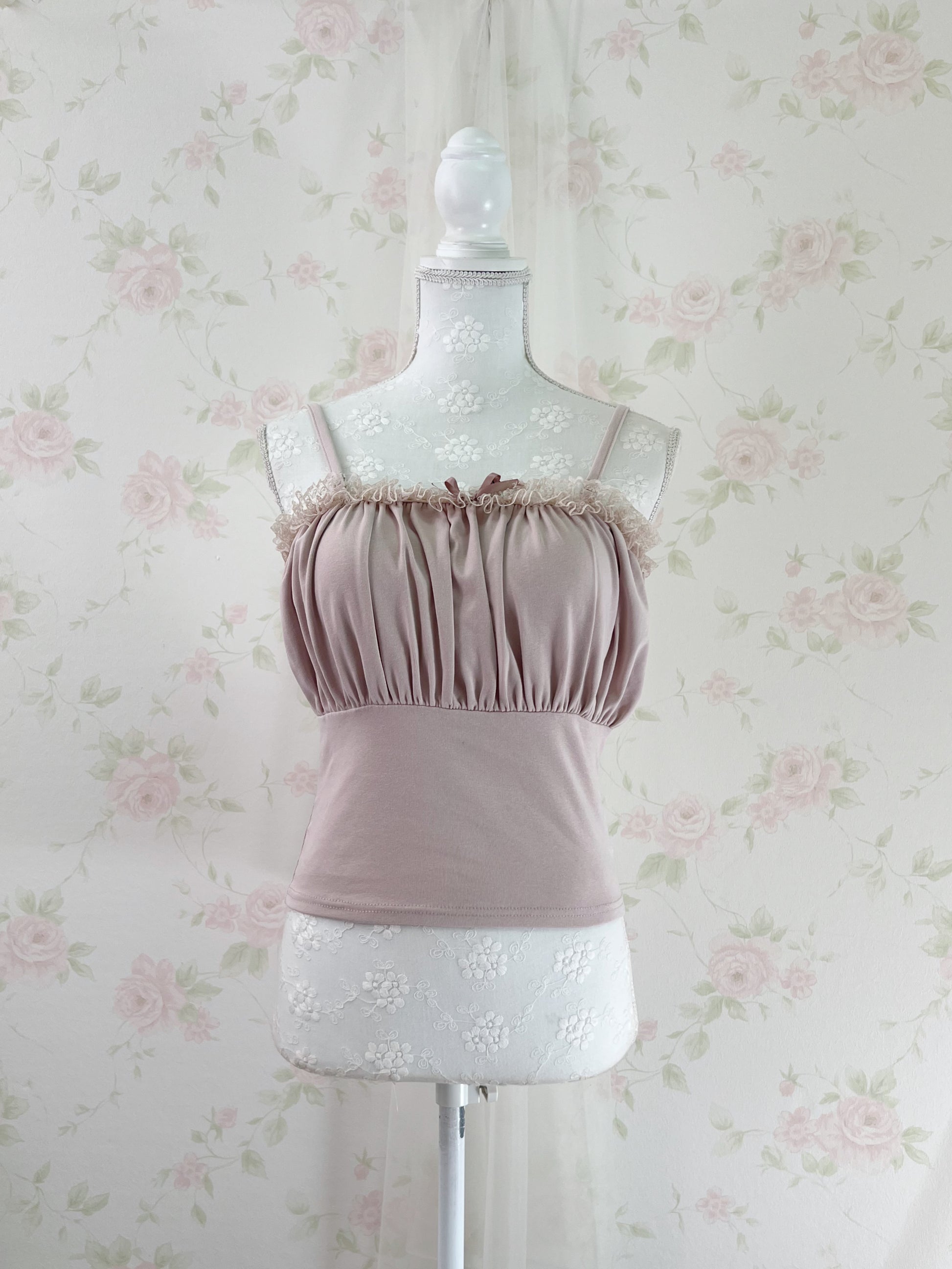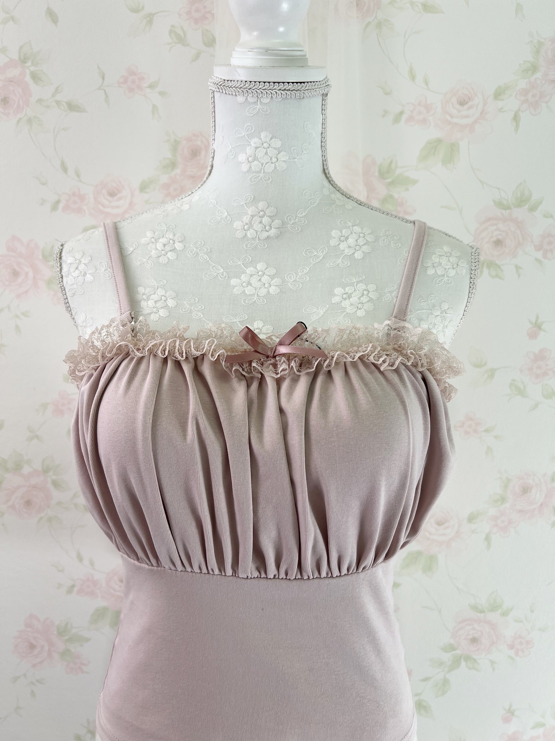 Dream Vision Gathered Petite Bow Camisole Top (Pink)