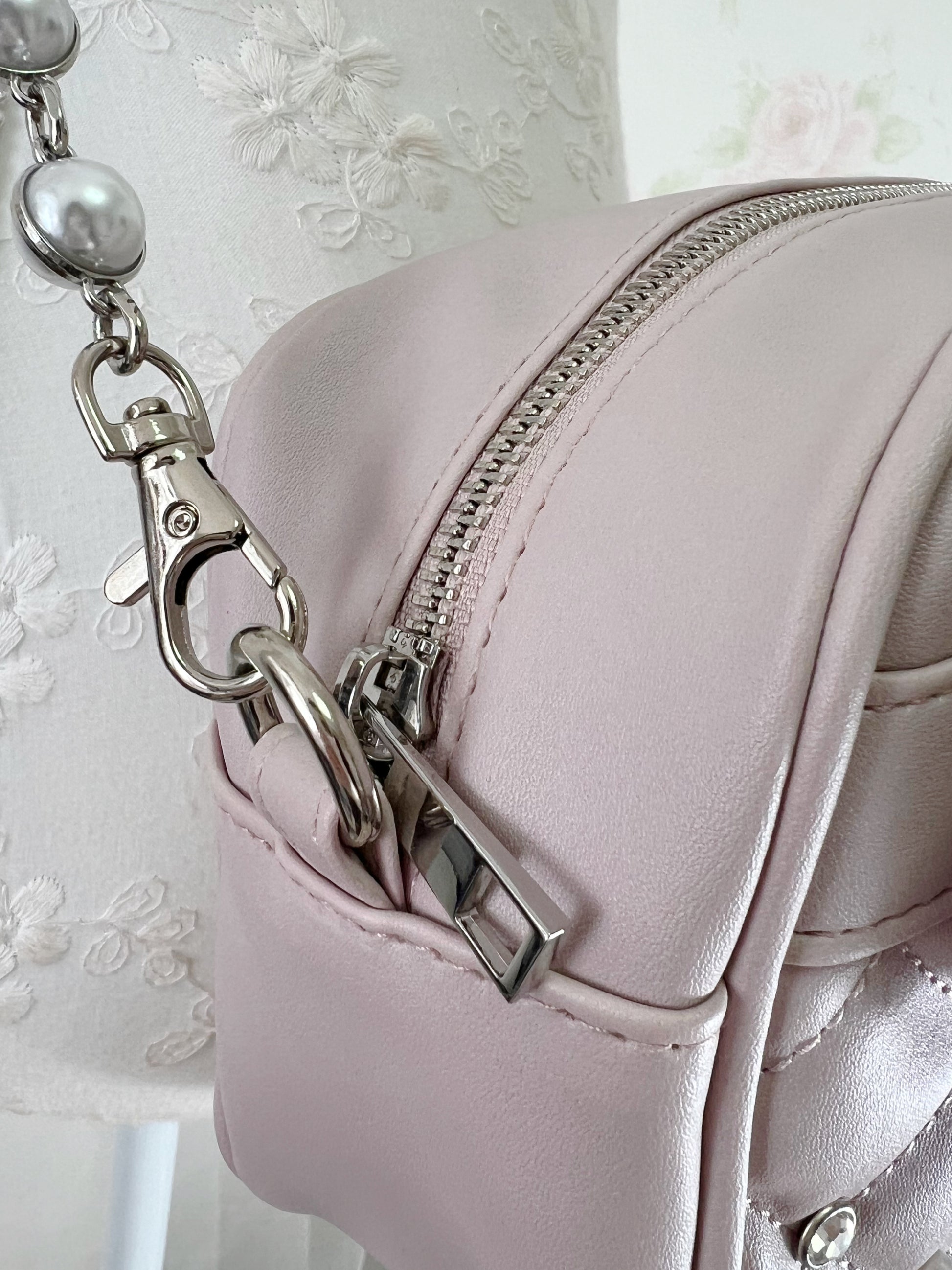 NOEMIE Crystal Buckle Pearl Shoulder Bag (Grayish Pink)