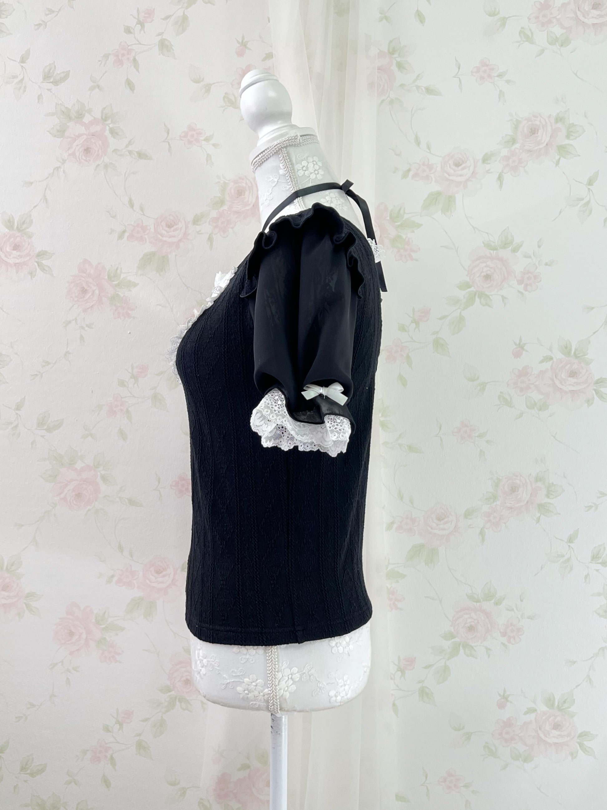 NOEMIE Halter Neck Laced Up Back Top (Black)