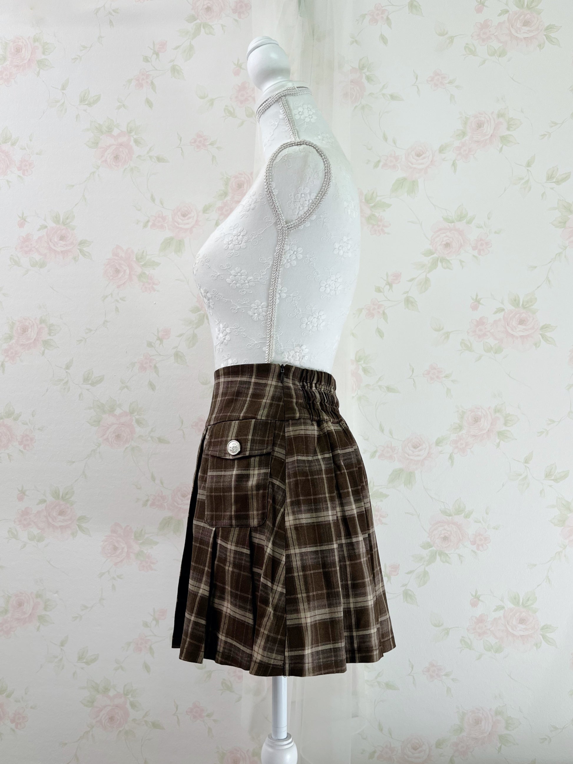 Olive des Olive Pleated Checked Skirt (Chocolate)