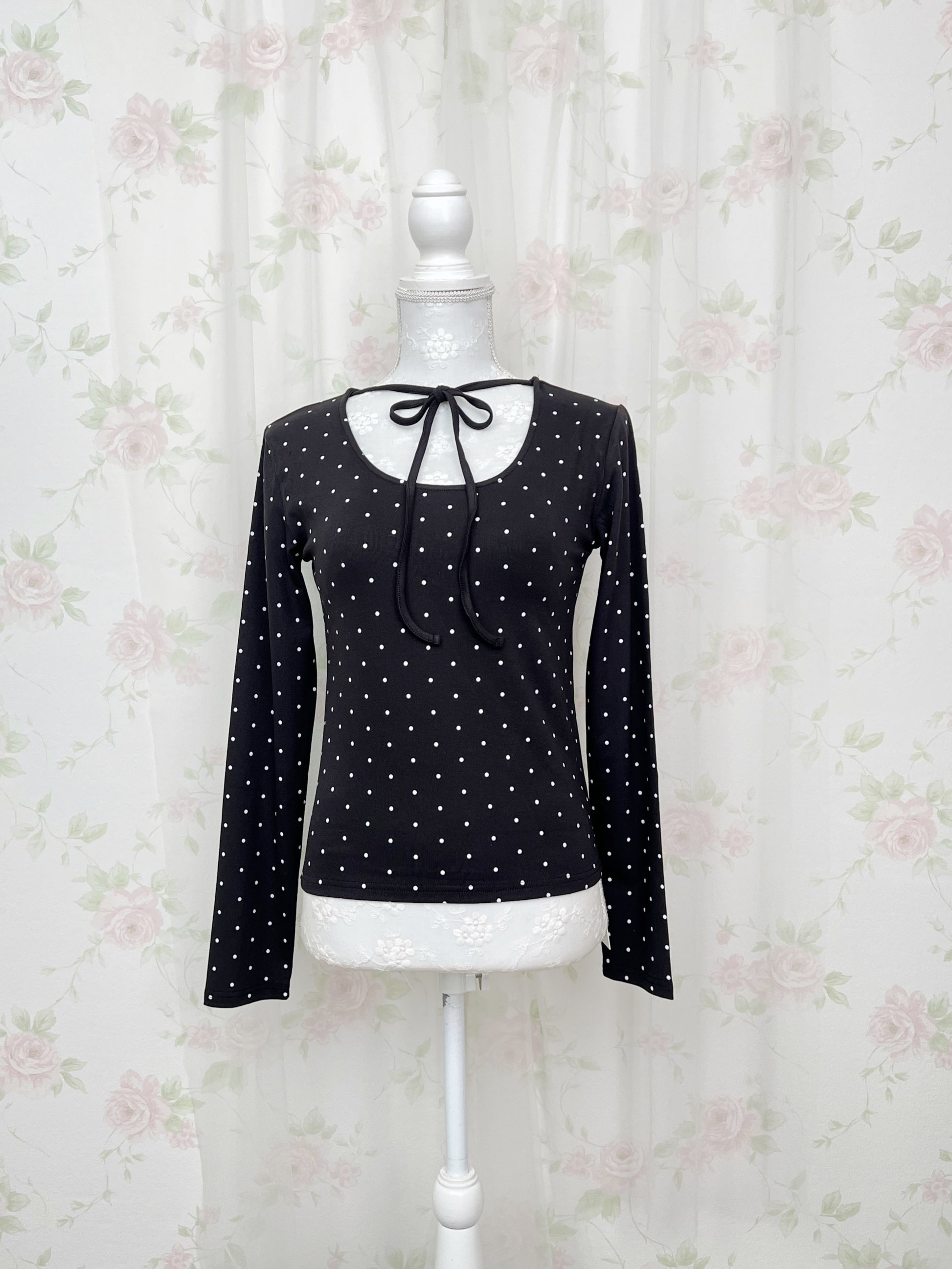 Polka Dot Halter Neck Top (Black)