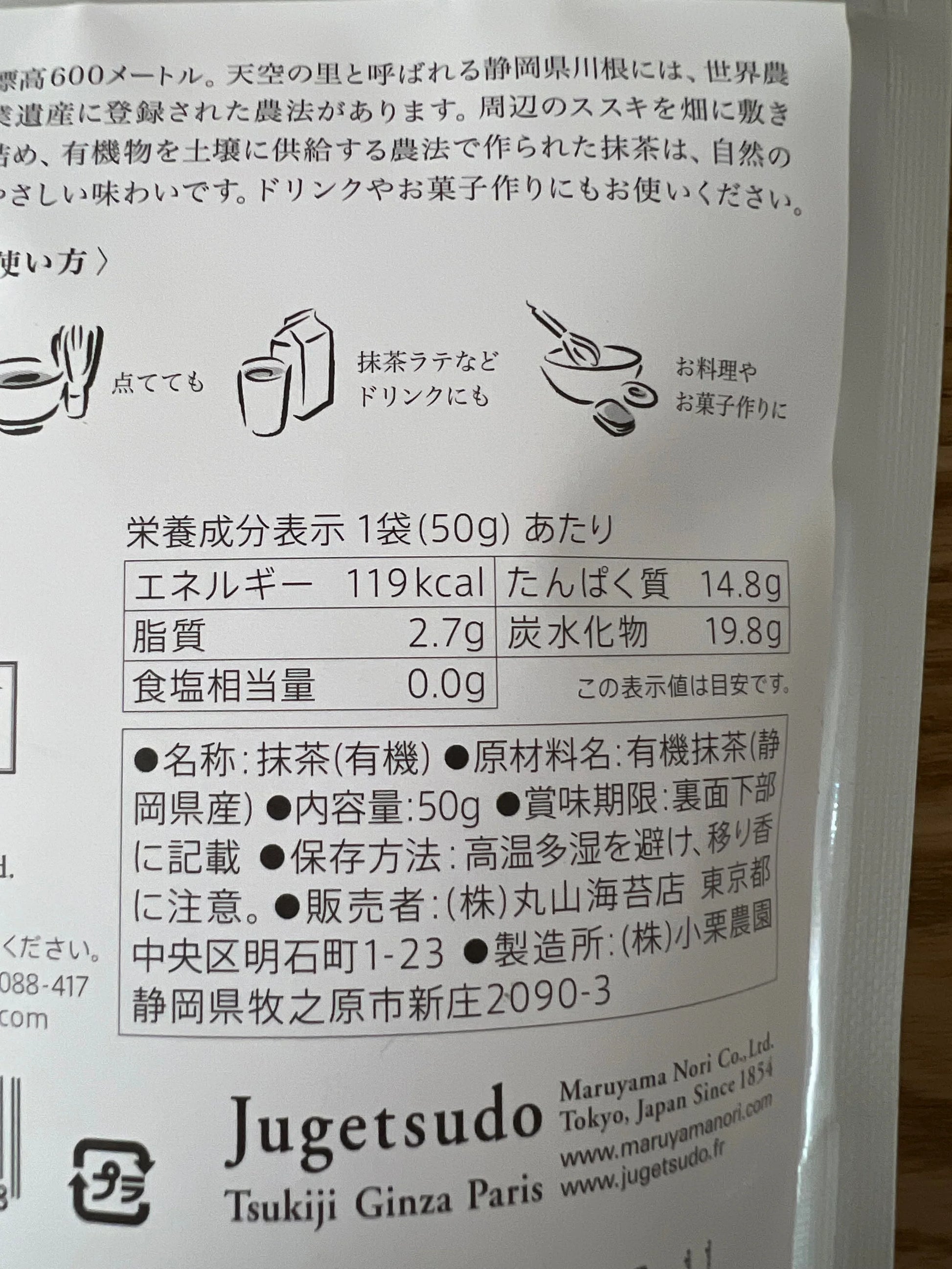 Ingredients: Organic Matcha(Made in Shizuoka)
